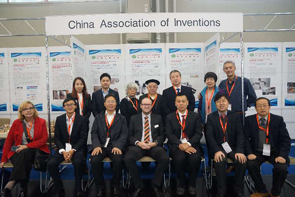 宣團(tuán)長率中國發(fā)明協(xié)會部分代表與發(fā)明展主席HENNING(前排中)、歐洲發(fā)明協(xié)會副主席BRENKA(前排左1)、葡萄牙發(fā)明協(xié)會主席費(fèi)爾南多(后排右1)合影