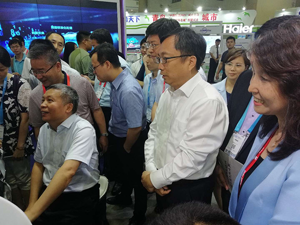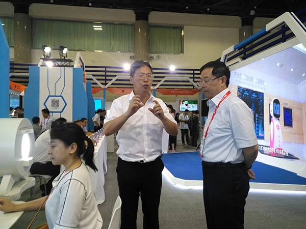 董事長(zhǎng)王聯(lián)向工信部副部長(zhǎng)張克勤介紹公司的中醫(yī)綜合診斷系統(tǒng),中醫(yī)醫(yī)聯(lián)體及中醫(yī)機(jī)器人在全國(guó)基層醫(yī)療和養(yǎng)老方面的應(yīng)用情況。